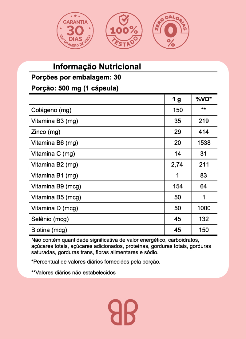 É um suplemento alimentar desenvolvido para cuidar da beleza e saúde de forma natural, eficaz e gentil com seu organismo.